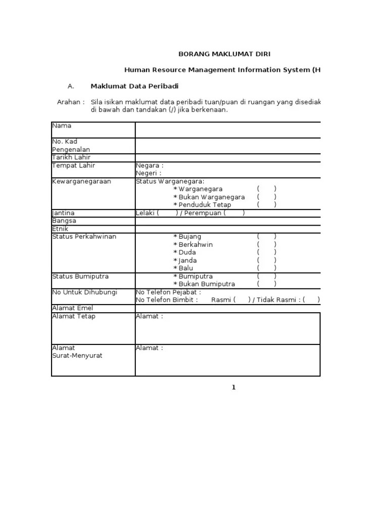 Contoh Borang Maklumat Diri - Namun, tidak menutup kemungkinan dengan alasan.