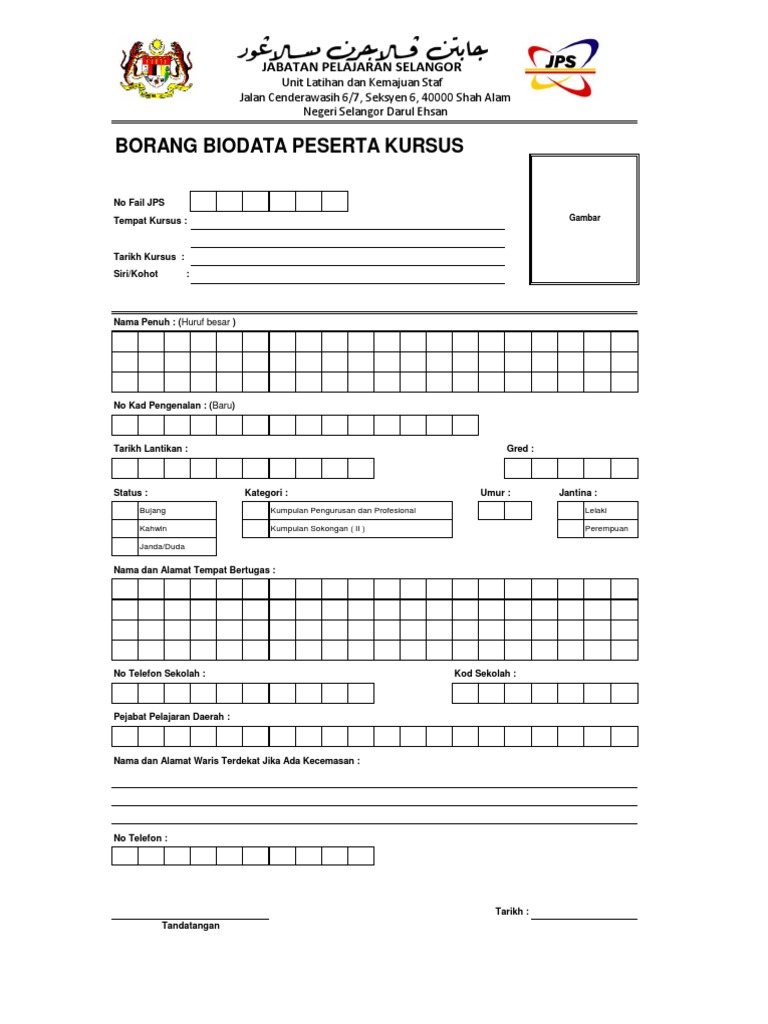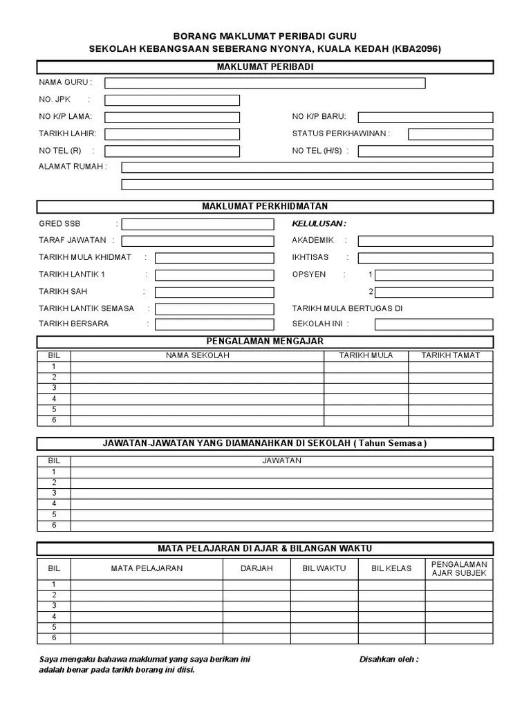 Borang pengesahan hantar tugasan (diisi setelah menghantar tugasan 2). Dan harapannya, ia bisa tetap bekerja sampai jangka waktu yang lama bahkan hingga pensiun. Borang markah kehadiran dan penyertaan (diisi pada setiap minggu). Contoh borang soal selidik penggunaan bahan bantu mengajar. Senarai tugas pembantu tadbir perkeranian. Contoh borang pencalonan murid ke kelas pemulihan khasfull description. Contoh borang soal selidik yang disertakan oleh mysumber ini adalah lebih menjurus kepada umum dan boleh dijawab dengan mudah oleh responden. Hubungan suami isteri , anak. Akta tabung haji 1995 (akta 535) th tertakluk kepada akta pencegahan pengubahan wang haram, pencegahan pembiayaan keganasan. Borang maklumat diri human resource management information system (hrmis) 2 b. Borang pendaftaran kumpulan (diisi pada pertengahan semester). Download lagu borang maklumat diri mp3 dapat kamu download secara gratis di metrolagu. Borang maklumat diri human resource management information system (hrmis) b.