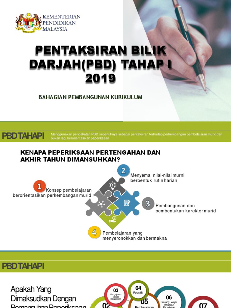Pentaksiran bilik darjah (pbd) diperkenalkan dengan tujuan untuk menilai dan mengukur perkembangan pembelajaran seseorang murid secara holistik. Buku panduan pentaksiran bilik darjah (pbd) edisi kedua. Pentaksiran adalah kemuncak kepada pembelajaran. Bahagian pembangunan kurikulum, kpm putrajaya. Panduan pelaksanaan pentaksiran bilik darjah 2018.